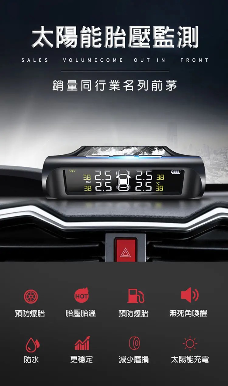 4分鐘前【官方站】太陽能無線胎壓監測器 輪胎盡在掌控!【太陽能 胎壓監測器】漏氣警報,胎壓警報,胎溫警報【太陽能電光板】無需佈線,可任意擺放!適用於所有輪胎,安裝超簡單,一看就會! - 【太陽能 胎壓監測器】
